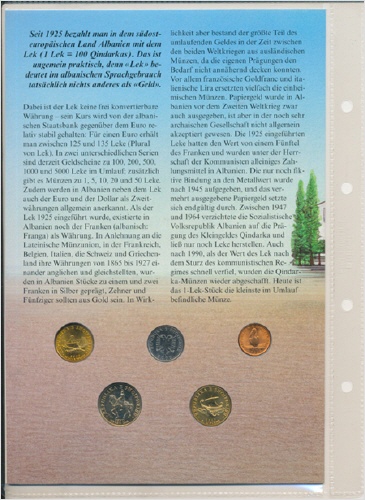 Münzen im farbigen Folder mit Beschrieb auf der Rückseite.