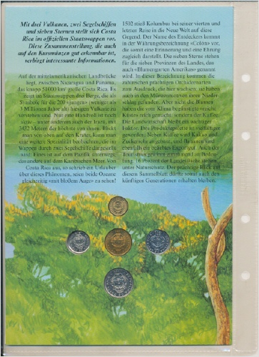 Münzen im farbigen Folder mit Beschrieb auf der Rückseite.