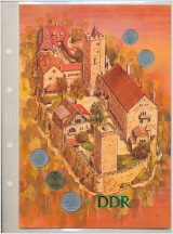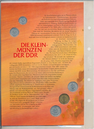 Münzen im farbigen Folder mit Beschrieb auf der Rückseite.