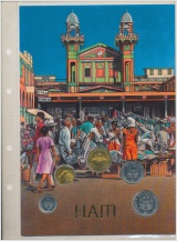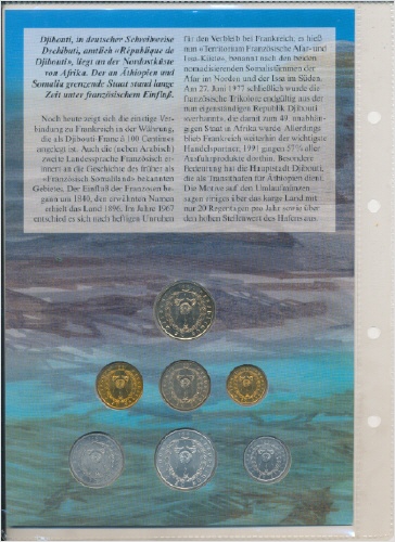 Münzen im farbigen Folder mit Beschrieb auf der Rückseite.