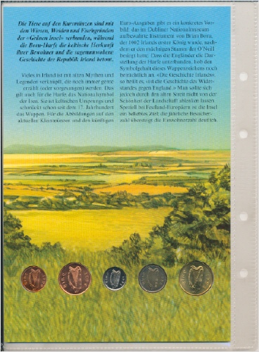 Münzen im farbigen Folder mit Beschrieb auf der Rückseite.