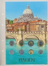 Münzen im farbigen Folder mit Beschrieb auf der Rückseite.