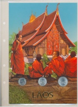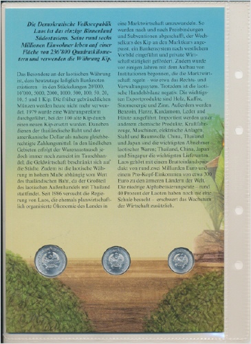 Münzen im farbigen Folder mit Beschrieb auf der Rückseite.
