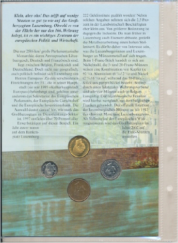Münzen im farbigen Folder mit Beschrieb auf der Rückseite.