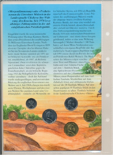 Münzen vom jeweiligen Land im farbigen Folder mit Beschrieb.