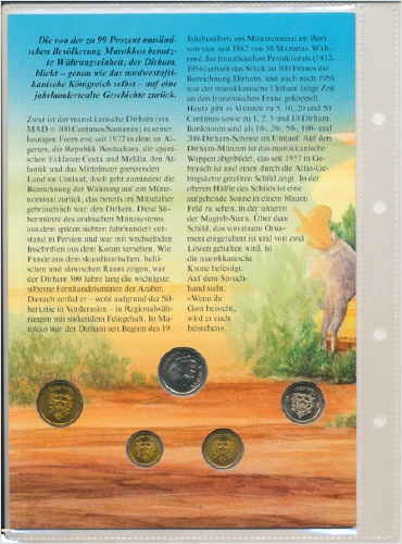 Münzen im farbigen Folder mit Beschrieb auf der Rückseite.