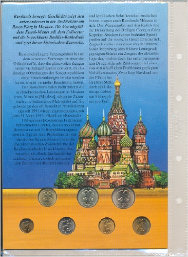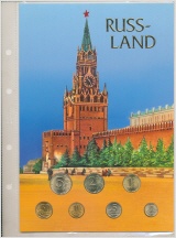 Münzen im farbigen Folder mit Beschrieb auf der Rückseite.