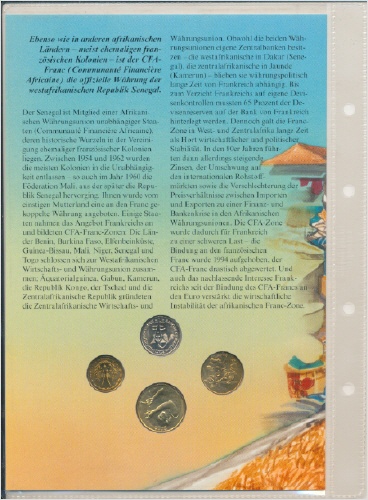 Münzen vom jeweiligen Land im farbigen Folder mit Beschrieb.