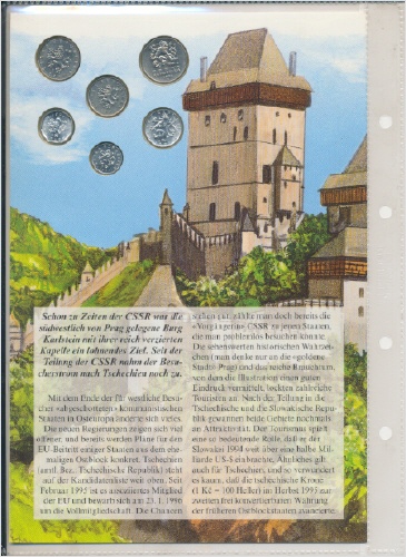 Münzen im farbigen Folder mit Beschrieb auf der Rückseite.