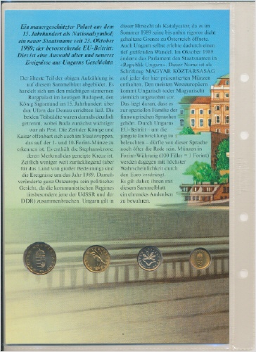 Münzen im farbigen Folder mit Beschrieb auf der Rückseite.
