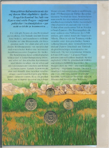 Münzen im farbigen Folder mit Beschrieb auf der Rückseite.
