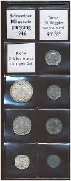 Der Münzsatz enthält einen Zweifränkler, Einfränkler, 50-, 10-, 5-, 2- und 1-Räppler.Fünfliber und 20-Räppler wurden in diesem Jahr nicht geprägt.