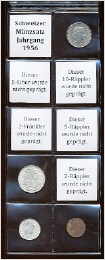 Der Münzsatz enthält einen Einfränkler, 50-Räppler, 20-Räppler, 2- und 1-Räppler.Fünfliber, Zweifränkler, 10-, 5 und Räppler wurden in diesem Jahr nicht geprägt.
